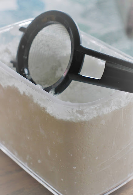 Sihtaa leivinjauhe ja vehnäjauho kulhoon ja lisää vaniljasokeri. Lisää jauhot varovasti munaseokseen vuorotellen maidon kanssa ja sekoita. Anna taikinan levätä tunnin ajan.