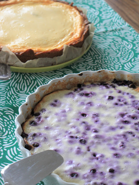 Banaani-suklaatiikerikakku ja mustikkapiirakka